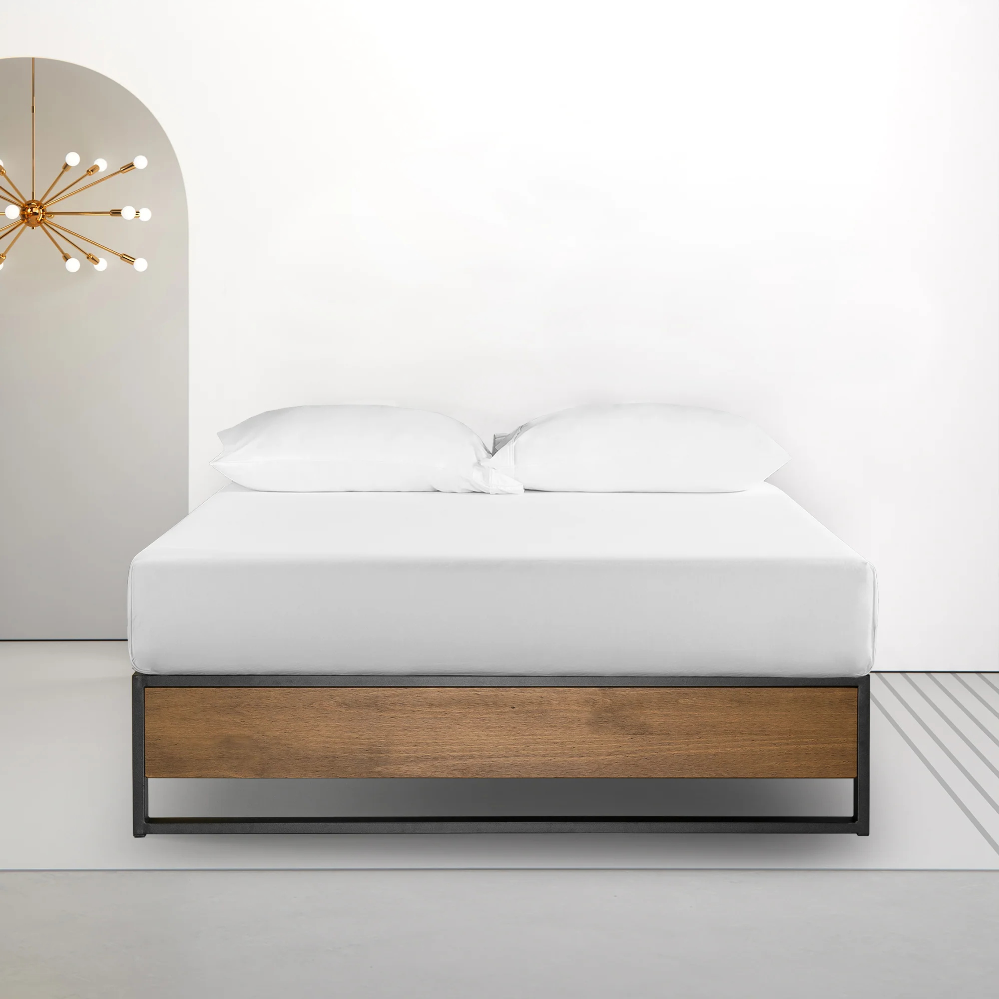 Sleek, sturdy and designed with a modern-industrial spin, this bed base frame takes the hard work out of looking good. Refined with details like a pine wood accented footboard and bold metal structure, this bestseller bed base is surprisingly simple to set-up. Delivered to your door with everything you need for assembly in under an hour. In fact, this 2019 GOOD DESIGN™ Award Winner Bed Frame has earned recognition for its elevated style, durable structure, box-spring eliminating platform and efficient, all-in-one-box packaging. Strong, beautiful and award-winning - a sleep scape trifecta.